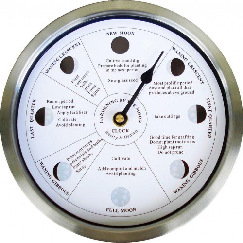 This exclusive Lunar gardening clock tracks the phases of the Moon every month of the year.